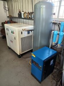 北部汽車維修板烤廠原使用往復皮帶式空壓機,因電價與噪音問題。故決定更換10HP永磁變頻空壓機設備一套!